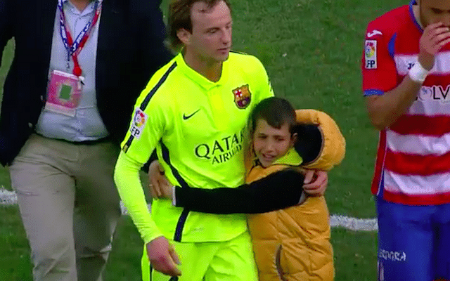 He opened the scoring for the Catalans in their game against Granada, a match that Barcelona eventually won 3-1. Following the match, a young fan ran up to Rakitic and was overcome with emotion, as he hugged him and refused to let go.