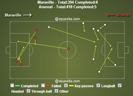Whilst they ultimately lost the game, they restricted Arsenal to just five key passes. Marseille actually completed more key passes than Arsenal – eight – meaning that the difference between the sides was mainly in finishing.