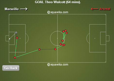 In September both of Arsenal’s goals came from their left hand side, with Kieran Gibbs involved in each of them. Walcott opened the scoring in France, and will be able to provide the genuine width that has been at times lacking in recent weeks. The Gunners can use Walcott’s directness, in tandem with a resurgent Bacary Sagna, to circumvent the centre of Marseille’s midfield, and can subsequently stretch the French side.
