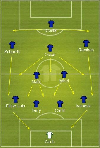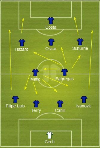 This was what I had pictured Chelsea to be playing before the start of last season. But I made a few errors in judgement there unfortunately. For instance, nobody would have expected Juan Mata to be replaced by Willian, or Oscar to start each and every game behind the striker.