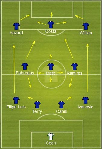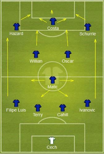 Chelsea are likely to play two of Hazard, Willian or Schurrle in the wide positions most frequently. Apart from skill on the ball, what sets them apart from the rest are their pace and acceleration. This should come in handy during counter attacks, because, there are two outlets on either side to play the ball to.