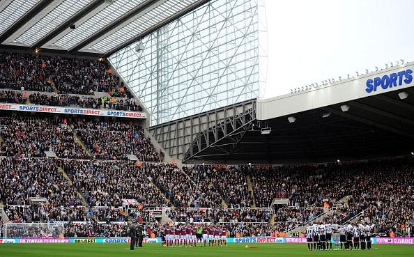 NEWCASTLE UPON TYNE, ENGLAND – NOVEMBER 11: The two teams line up for a minute’s silence in remembrance of those who died during the First World War in St. James’ Park, Newcastle-upon-Tyne, England