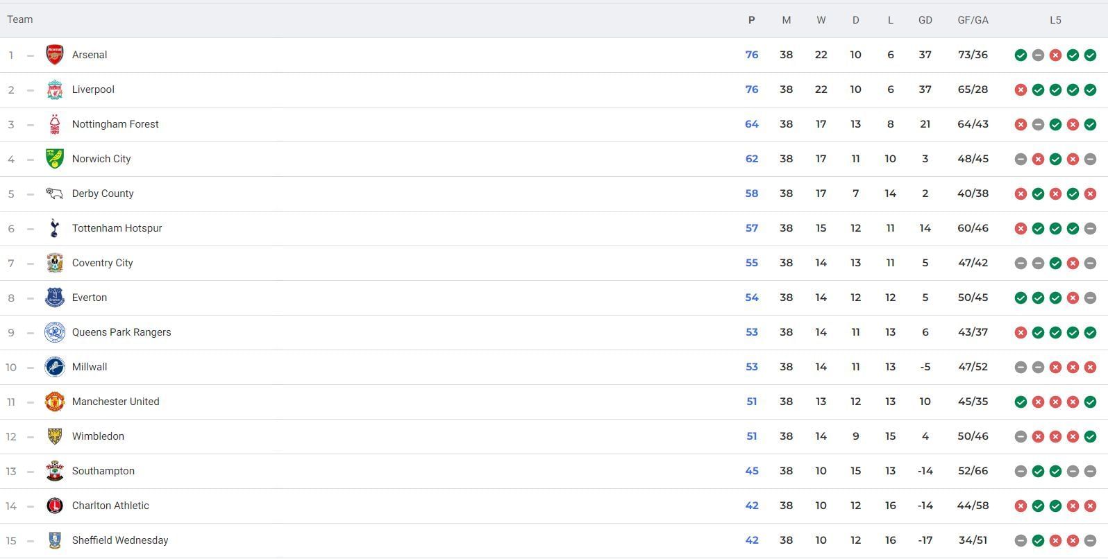 The final whistle confirmed Arsenal as champions, having equal points and the same goal difference, but they won on account of scoring more goals. They also conceded more goals than Liverpool (equalling the Goal Difference), but the league gave emphasis to the team that scored more goals. The defeat marked a turning point for Liverpool, while Arsenal celebrated their hard-earned title victory.