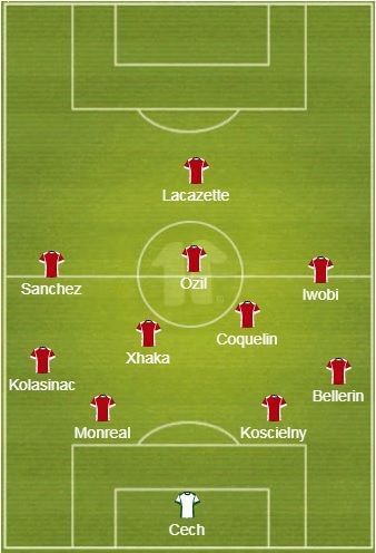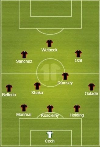 To address the wider areas, an ideal solution could be to have both wingers and full-backs, unlike their 3-4-2-1. The full-backs would be an easy choice with Bellerin on the right and Kolasinac on the left while the wingers ahead of them could be Iwobi on the right and Sanchez on the left. Both Iwobi and Sanchez are hard-working players and would be ready to track back and help the full-backs defensively and this would also give much-needed width for Arsenal while going forward.