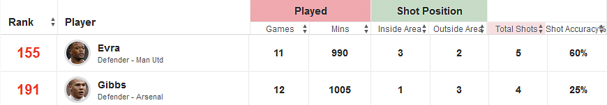 By contrast, Evra has a shot accuracy of 60% – more than double of the 24-year-old Englishman.