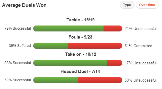 Despite these positives, Xhaka has shown a certain number of limitations to his current level of performance. His shooting for example is below par. With an shot accuracy of just 20%, it becomes fairly obvious to see exactly why the 21-year-old has failed to score so far this campaign. This, alongside his precision accuracy last season (22%), suggests his goalscoring ability is far inferior to the aforementioned aspects of his game.