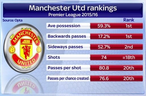 Schneiderlin and Schweinsteiger, on the other hand, play way too many sideways or backward passes that make the play very slow and predictable. This is also reflected in the statistics above where United are currently first and second in the number of back and side passes respectively.