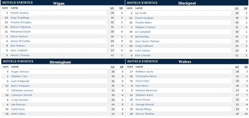 Looking at the above stats for last season, it is evident that Wigan and wolves managed their squads effectively than relegated clubs -Birmingham and Blackpool. But it isn’t a decisive factor as seen from relegation of West ham united, the club with much bigger squad, along with Blackpool and Birmingham.
