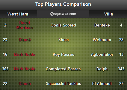 And as top chance creator (13) Agbonlahor is at risk of missing the trip to east London, the striker may have to put the vision that has seen him play 12 key passes in 2013-14 to good use alongside his finishing skills to fire Villa back into scoring form.