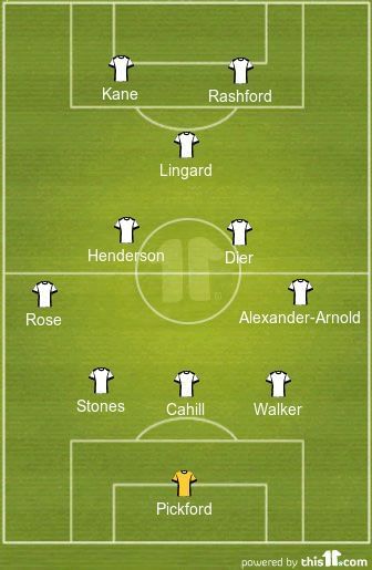 England XI vs Belgium: Pickford, Cahill, Stones, Jones, Alexander-Arnold, Rose, Dier, Delph, Loftus-Cheek. Rashford, Vardy