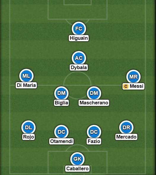 Messi will have the task to control the midfield from the right while Di Maria will be present at the LM position. In such a scenario Messi will be expected to make runs and deliver crosses into the box for Dybala and Higuain.