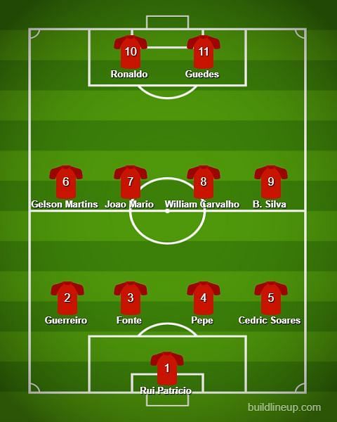 Portugal's preferred formation is 4-4-2 flat. Cristiano Ronaldo and Andres Silva will start up top. Goncalo Guedes has been in top form and he could very well replace Silva to partner Ronaldo. Quaresma on the right, Gelson Martins on the left and William Carvalho alongside Joao Mario in the centre. The right wing back's role will go to Cedric Soares whereas Raphael Guerreiro will take charge of the left wing.