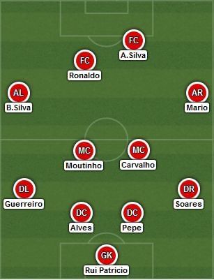 The strike force up front revolves around Cristiano Ronaldo, with Milan's Andre Silva giving him company. Quaresma and Guedes might also drop in to help out, but the 22-year-old shares great chemistry with the Madrid superstar, and what more do you need?