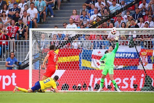 After a heroic night against Colombia in the penalty shootout, Pickford was a mere spectator throughout the first half, as Sweden failed to muster a shot on target, but in the second half, he was called into action a lot more and made three outstanding saves.
