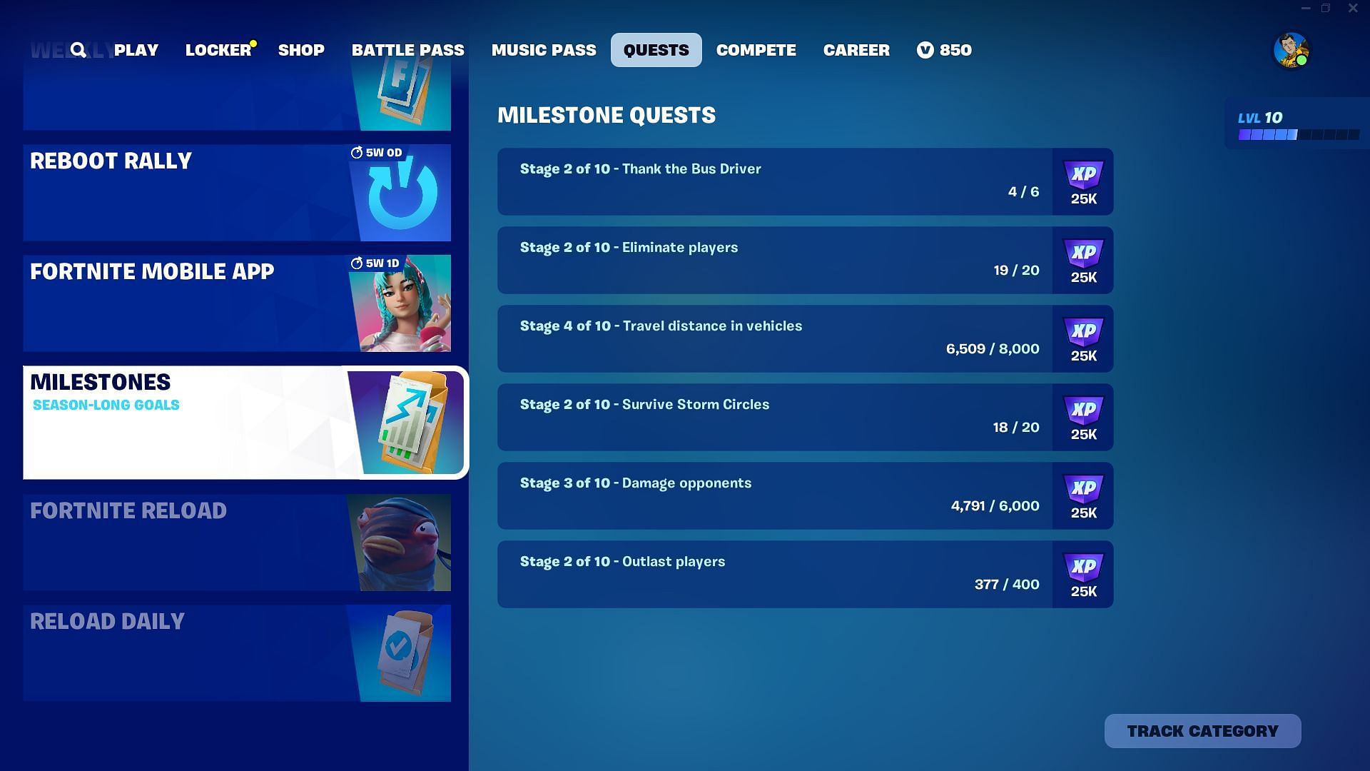 Eliminate Players, Survive Storm Circles, Damage Opponents, and Outlast Players are all related to combat, and a bit of survival. When you start a match, try to get as many eliminations as possible and survive for as long as you can. This will help you progress along these Milestones.