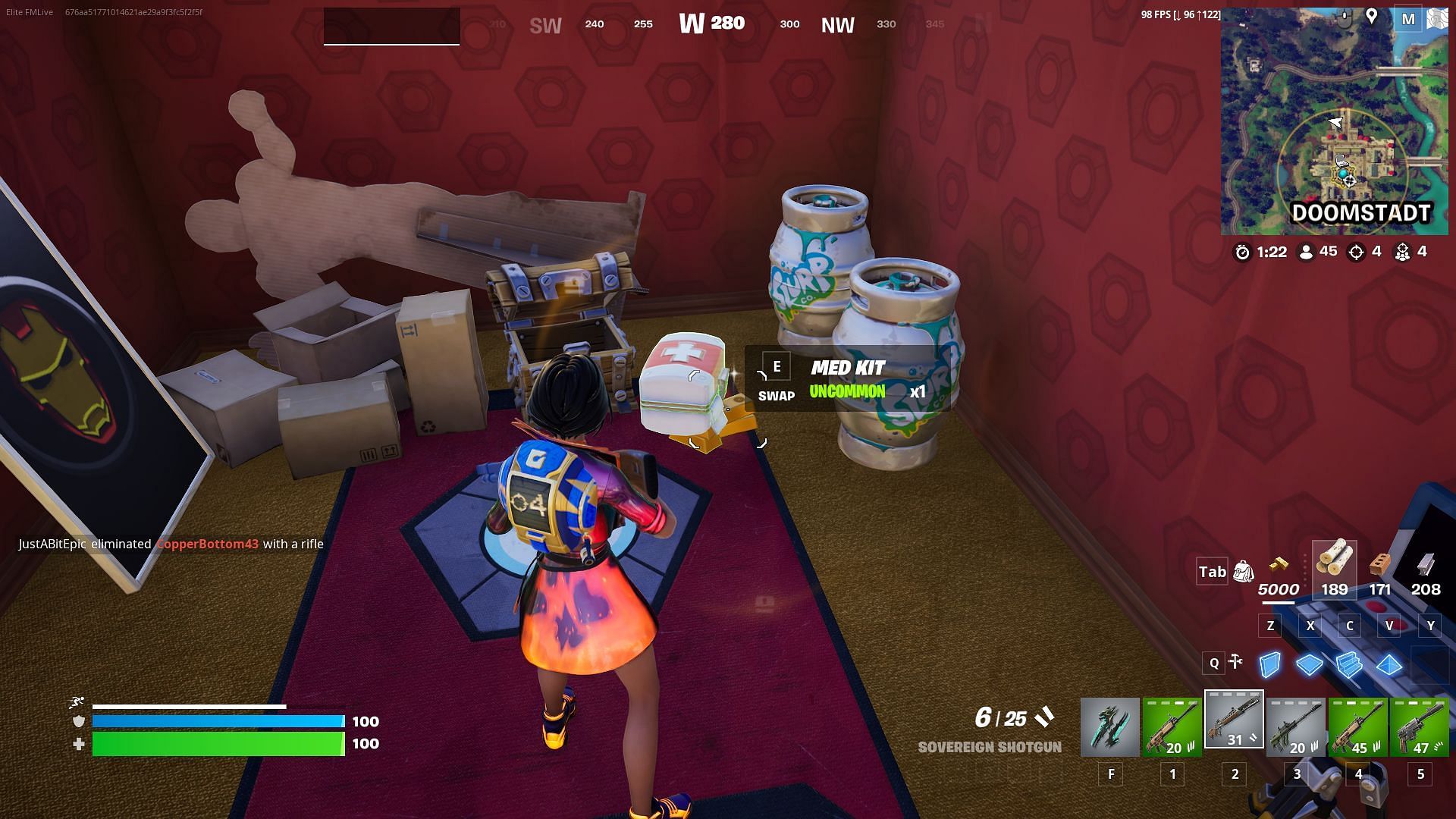 You can easily complete the fourth part of the Fortnite Chapter 5 Season 4 Week 3 quests by restoring 200 health. Health can be restored using medkits, Slurp Barrels, Chug Splashes, or even using a Mending Machine. Find these healing items throughout the map, including all the new locations in Absolute Doom.