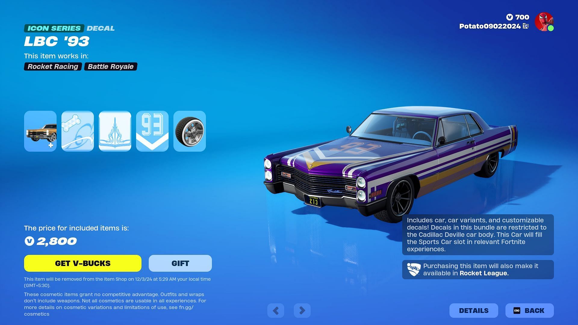In addition to these cosmetics, you can also purchase Snoop Dogg | Cadillac Bundle for 2,800 V-Bucks. It comprises five cosmetic items:
