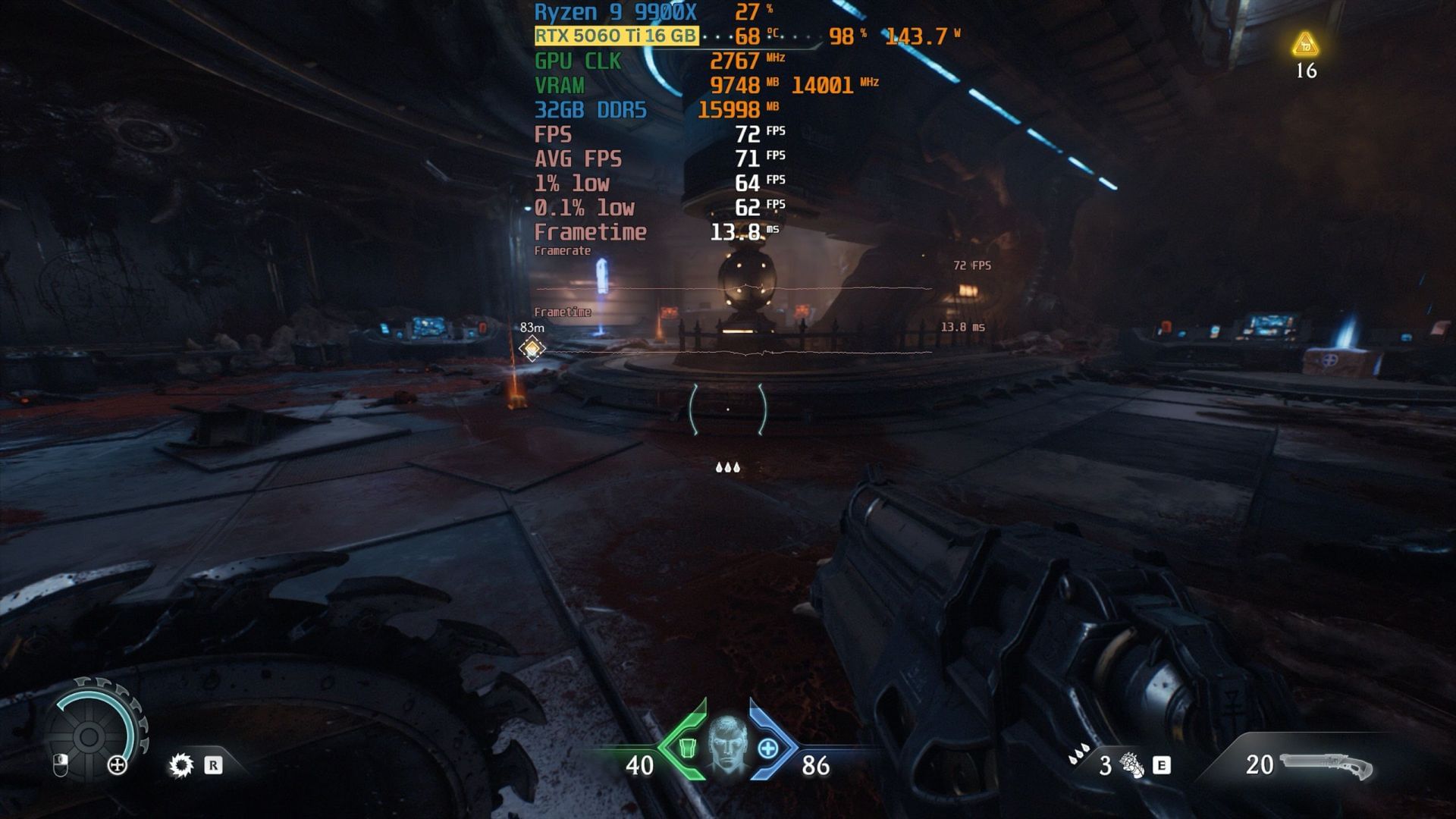 We tested DOOM: The Dark Ages on the Nvidia RTX 5060 Ti 16 GB variant exclusively at 1440p. The card can pull off very impressive framerates at this resolution. Given the extra crispness and clarity over FHD, we recommend gamers stick to QHD.
