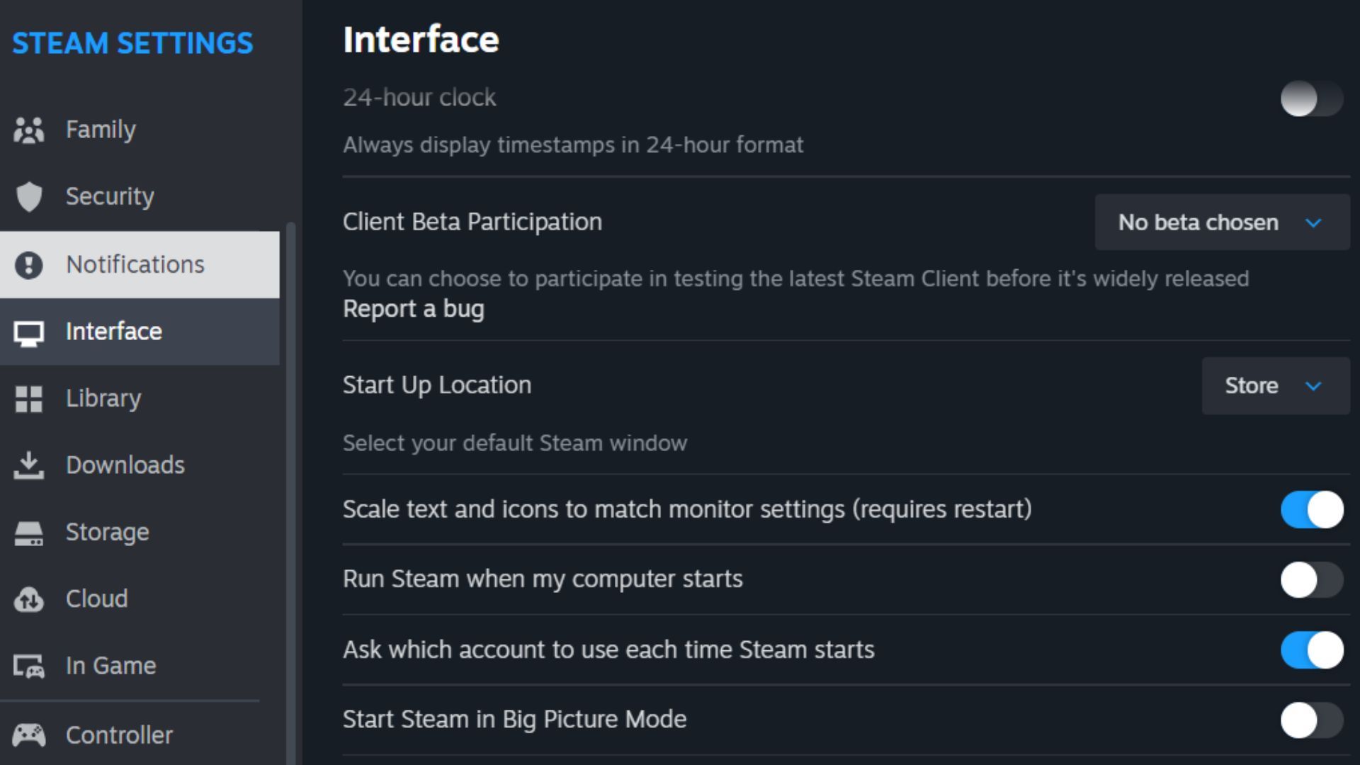 - Click on the Steam icon at the top-left corner of the screen and select Settings.