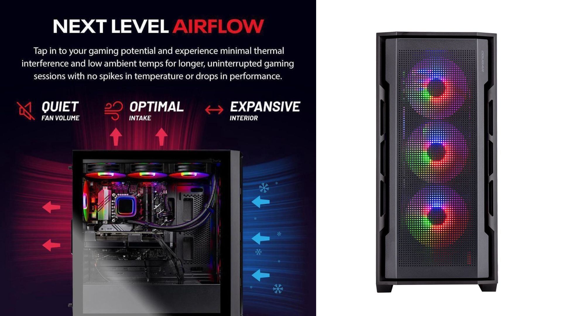 It comes with a 360mm AIO liquid cooler and features four fans. These fans also have addressable RGB lighting, allowing you to match the colors to your gaming setup.