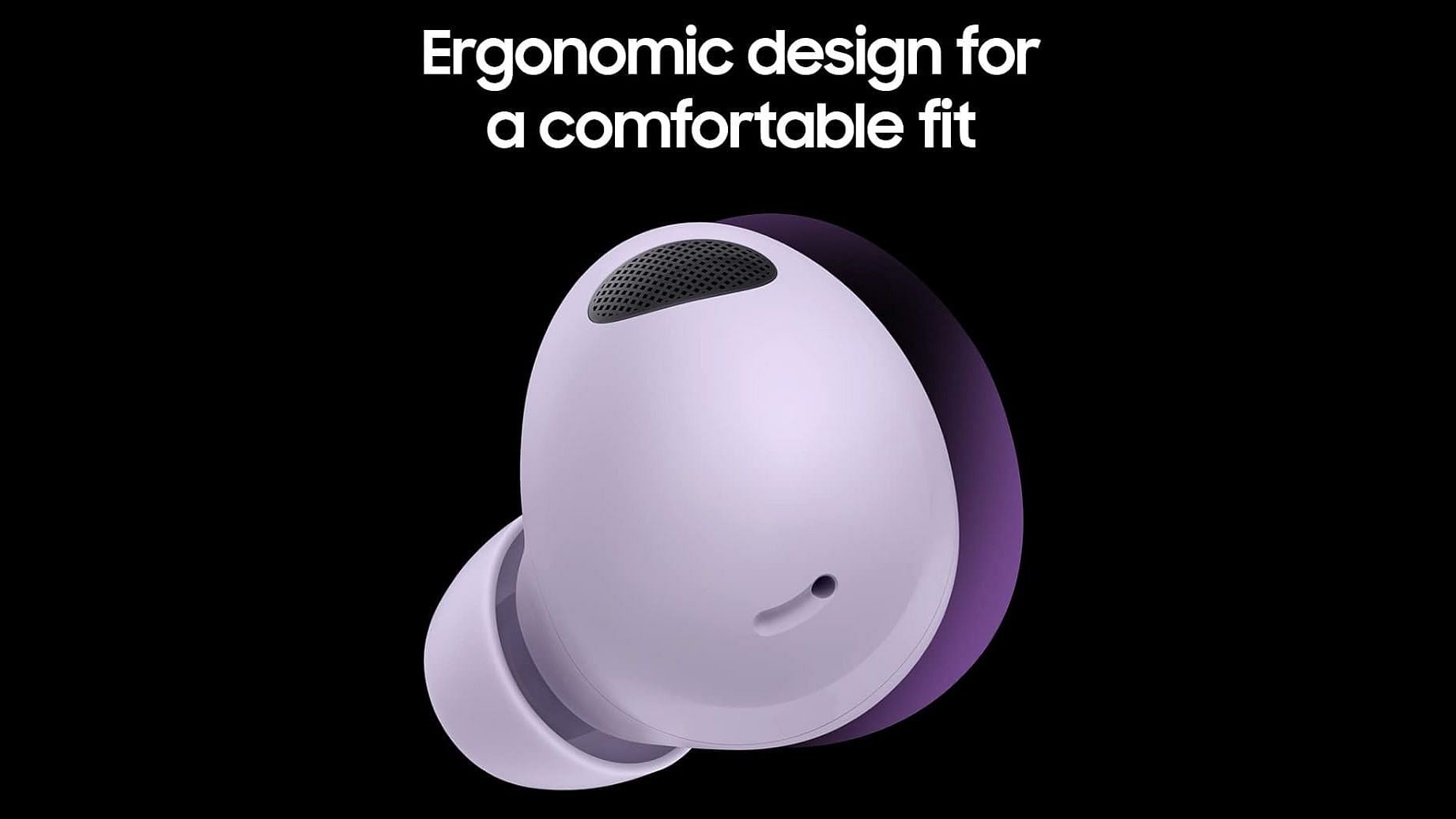 The Samsung Galaxy Buds2 Pro is ergonomically designed to fit your ears, with a stem-less design that enhances comfort. Their snug fit ensures the buds stay in place, even when you are working out.