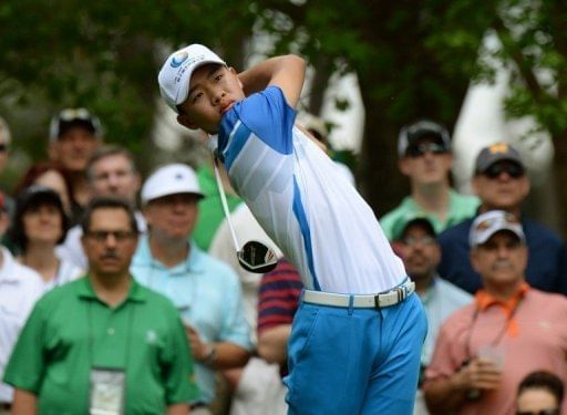 Guan Tianlang of China hits a shot during the first round of the 77th Masters golf tournament at Augusta National Golf Club, on April 11, 2013, in Augusta, Georgia. Second-round play began Friday in the 77th Masters with Spain’s Sergio Garcia and Australian Mark Leishman sharing the lead and Tiger Woods lurking close behind in familiar territory.