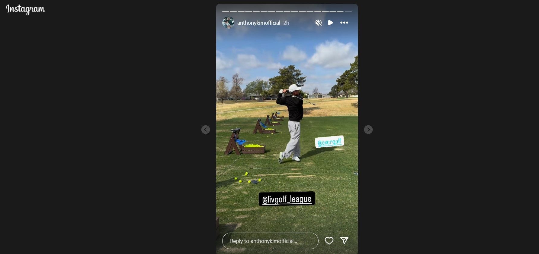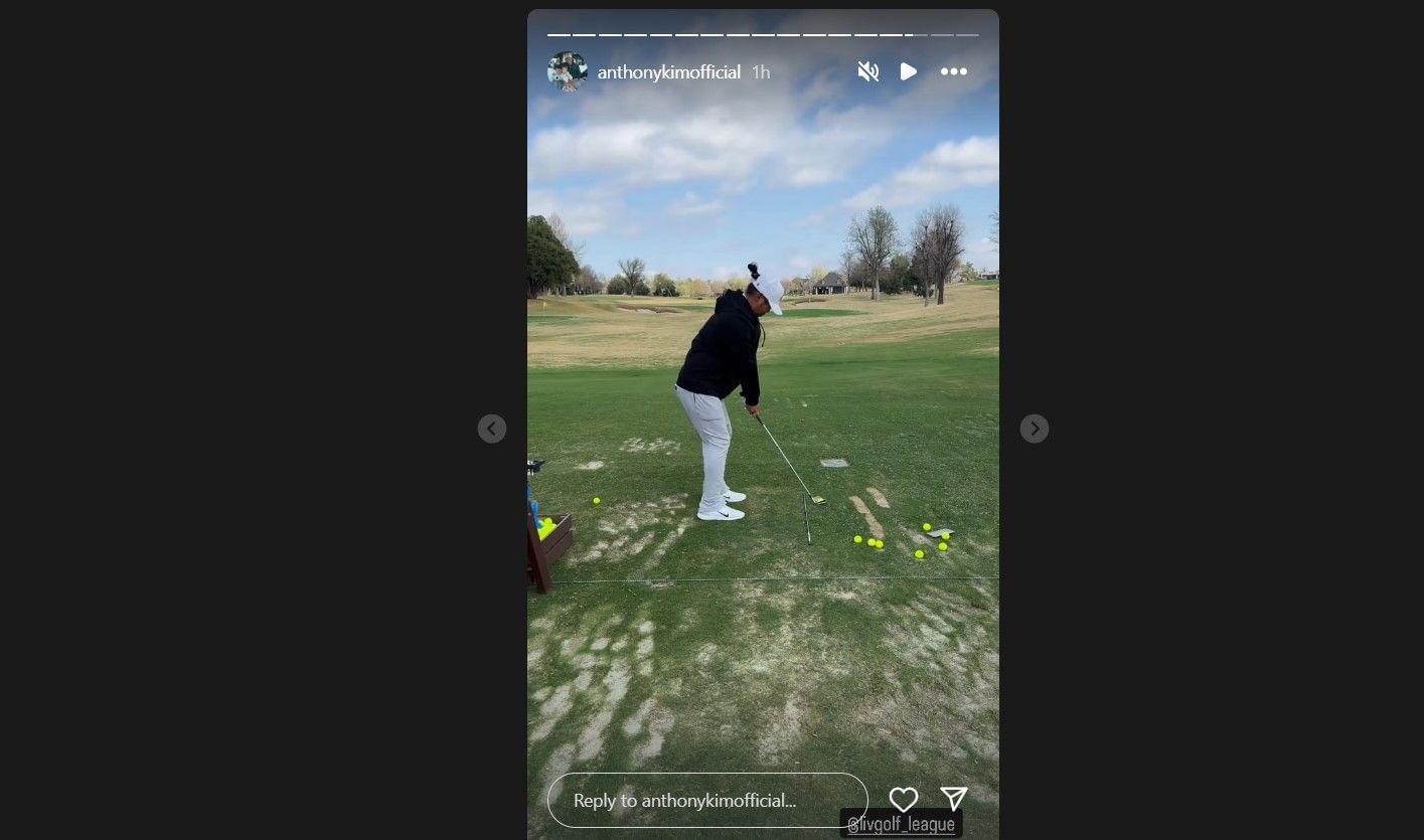 Anthony Kim has been sweating it out on the golf course to prepare for the upcoming events. On Saturday, he shared several videos on his Instagram story of him working on his swing and short game. Sporting a black pullover, gray trousers, a white cap and matching Nike shoes, Kim also tagged LIV Golf in these stories.