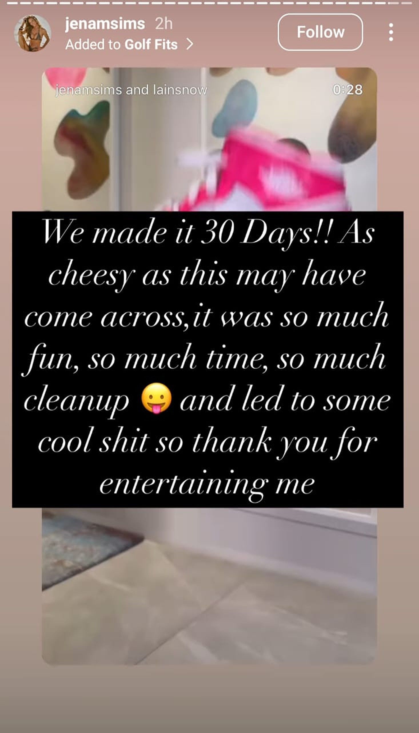 "We made it 30 days!! As cheesy as this may have come across, it was so much fun, so much time, so much cleanup 😛 and led to some cool s*** so thank you for entertaining me."