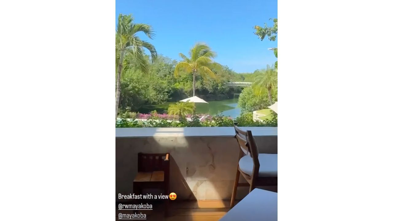 She took a video of herself lounging in a white bathrobe before flipping the camera to show off her incredible view. She captioned it: