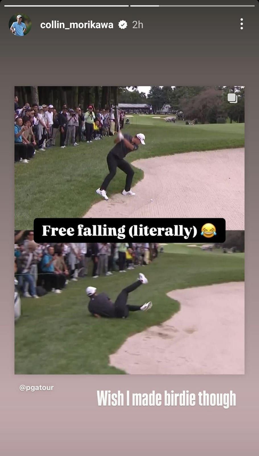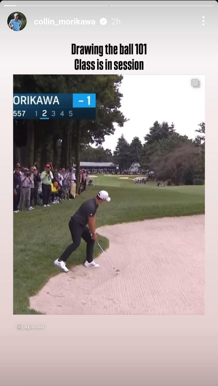 The PGA Tour's Instagram page uploaded a video where Morikawa could be seen taking a shot from a sand bunker. After he took the shot, the golfer fell to the ground. Later, Morikawa reposted it on his Instagram story with a pun-intended caption: