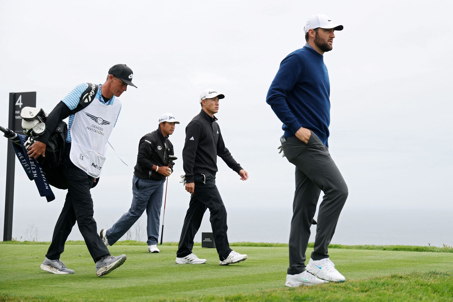 Hideki Matsuyama is paired with Scottie Scheffler and Collin Morikawa in Round 1 of the Genesis Invitational. Part of Tee No. 1, the trio teed off at 2:20 pm ET.