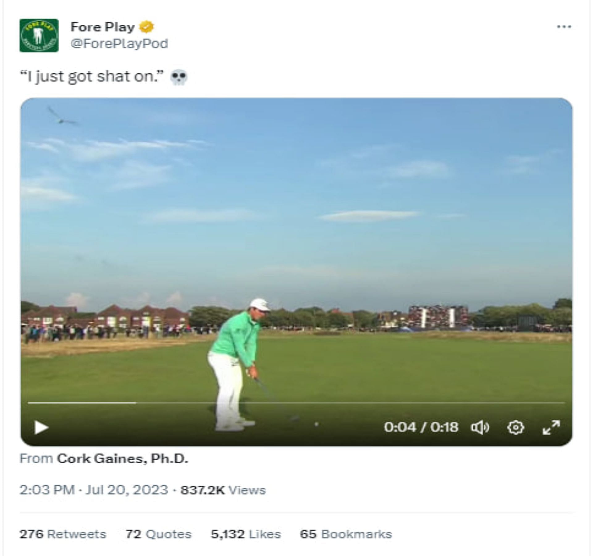 Hovland had to turn to his caddie to clean it up. A "hot mic" clearly recorded him saying, "I just got sh** on".