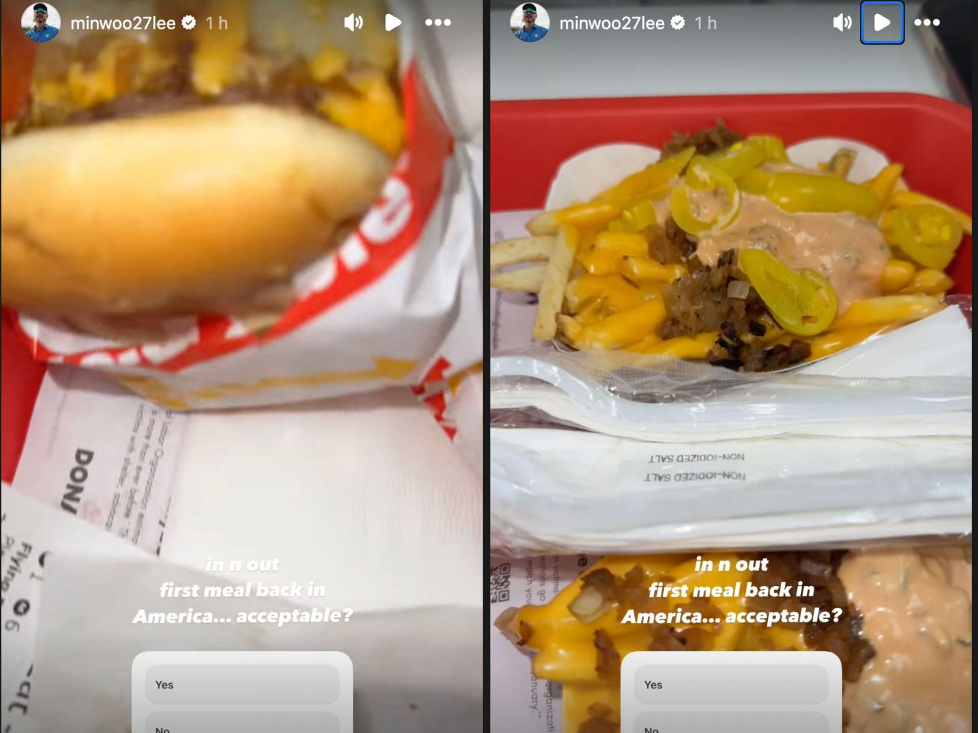 "In n out first meal back in America... acceptable?," he asked fans.