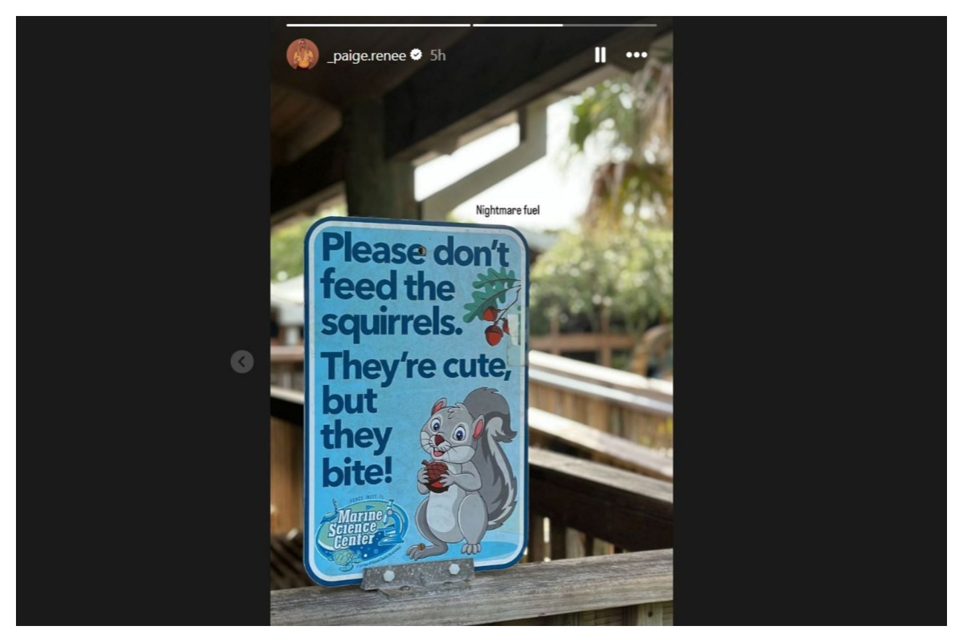 "Please don't feed the squirrels. They're cute, but they bite!" the board read.