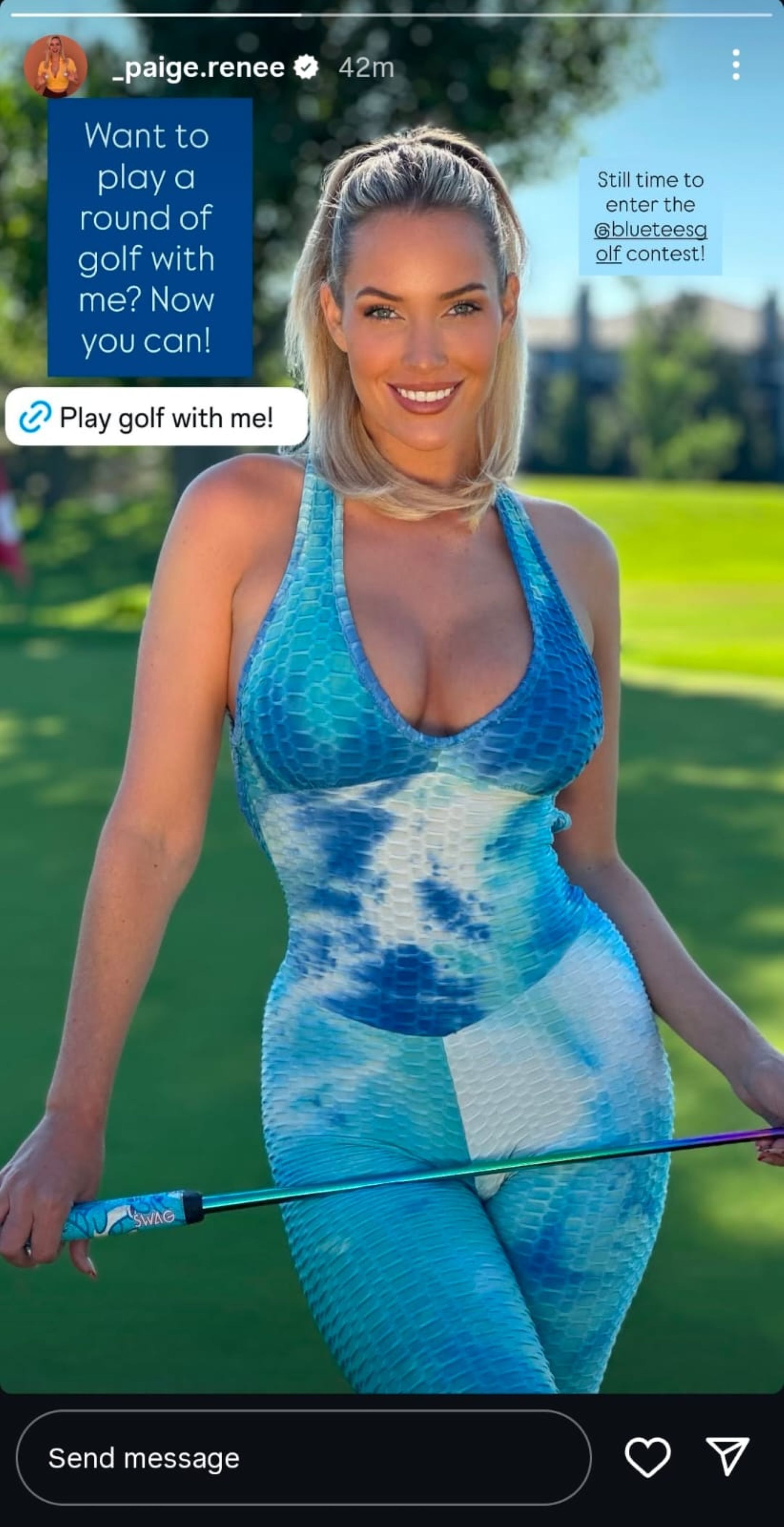 Paige Spiranac is giving her fans a chance to tee it up with her. On Wednesday, September 17, the popular golf content creator shared an Instagram story promoting a contest from her sponsor, Blue Tees Golf.