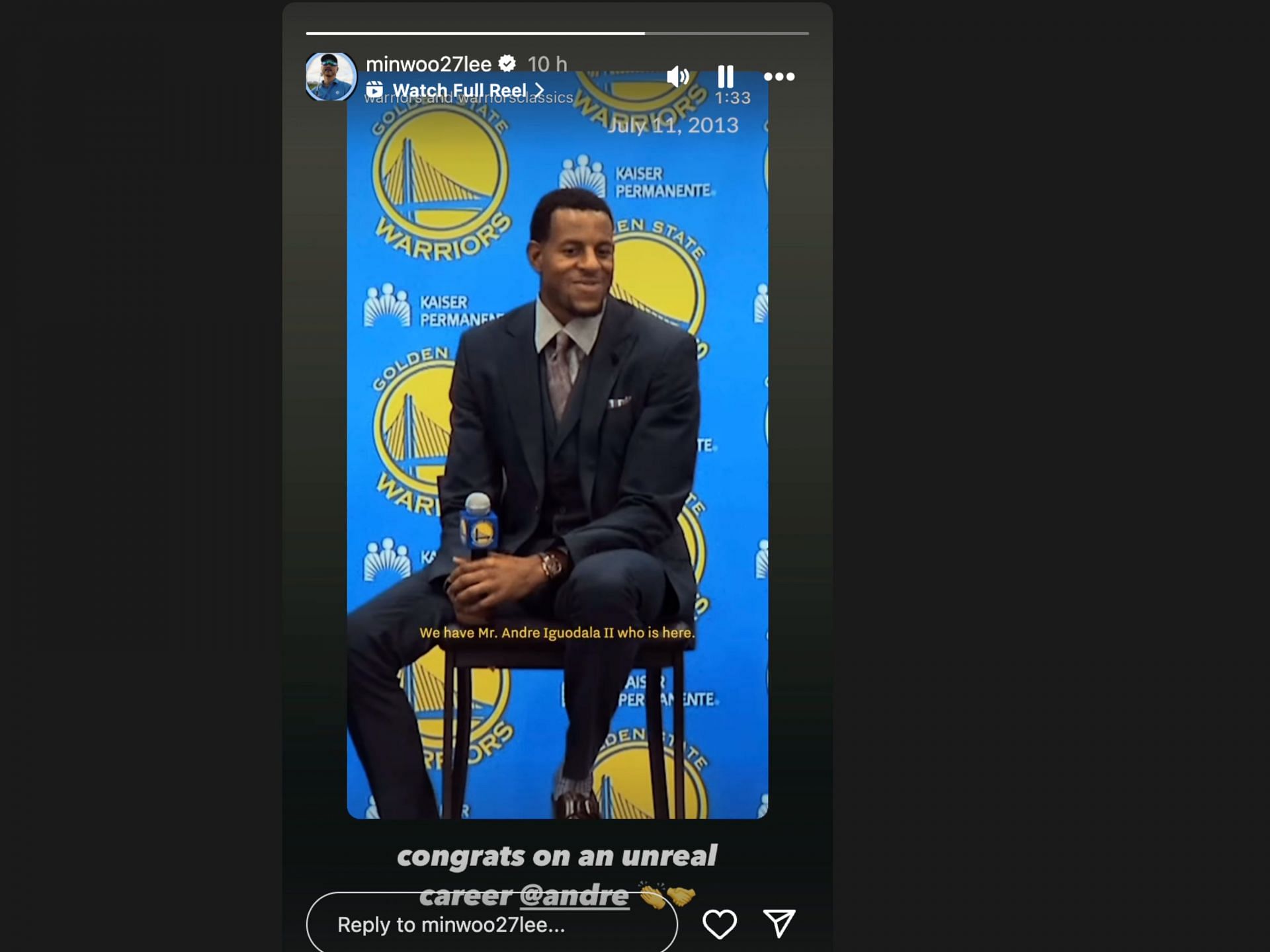 On Sunday, February 23, the Golden State Warriors hosted a ceremony announcing the retirement of the No. 9 jersey, which the $80 million NBA star wore until his retirement in 2023. Min Woo Lee reposted the Warriors' tribute video to their star swingman on Instagram.