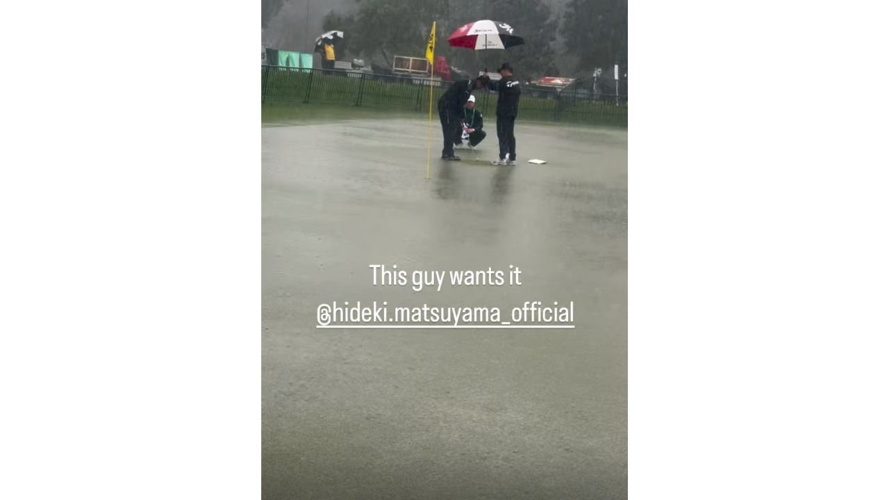 In fact, it might be raining as hard there as anywhere, at least according to Austin Eckroat's story. The two-time PGA Tour winner posted a story showcasing that Matsuyama was practicing amid an incredible downpour.