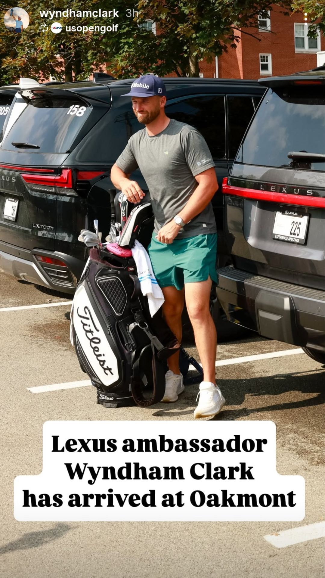 "Lexus ambassador Wyndham Clark has arrived at Oakmont"