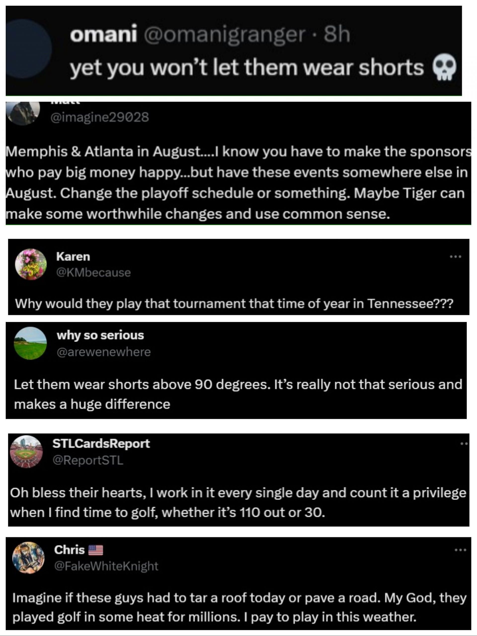Golf Twitter had a few things to say about the extreme heat conditions at TPC Southwind. Some fans believed that this wasn't the correct time to hold any event at the Memphis, while others questioned the PGA Tour's outfit rules for these conditions.