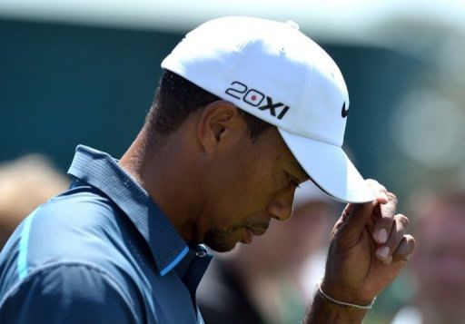Tiger Woods of the US plays during the third round of the 77th Masters golf tournament at Augusta National Golf Club on April 13, 2013 in Augusta, Georgia. Woods was hit with a two-stroke penalty in a dramatic start to the third day of the Masters at Augusta National on Saturday with some calling for his disqualification.