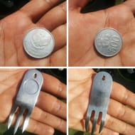 He has had the Indonesian 500 Rupiah as his marker for a while. He doesn’t consider it to be lucky or anything such. He uses whatever is in his bag as his marker. However, his pitch fork has been with him for a while as he finds it very effective while repairing pitch marks.