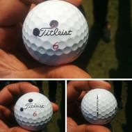 He always marks his golf ball with a black dot on the right and up side of the Titleist logo both on the front and back of the ball.