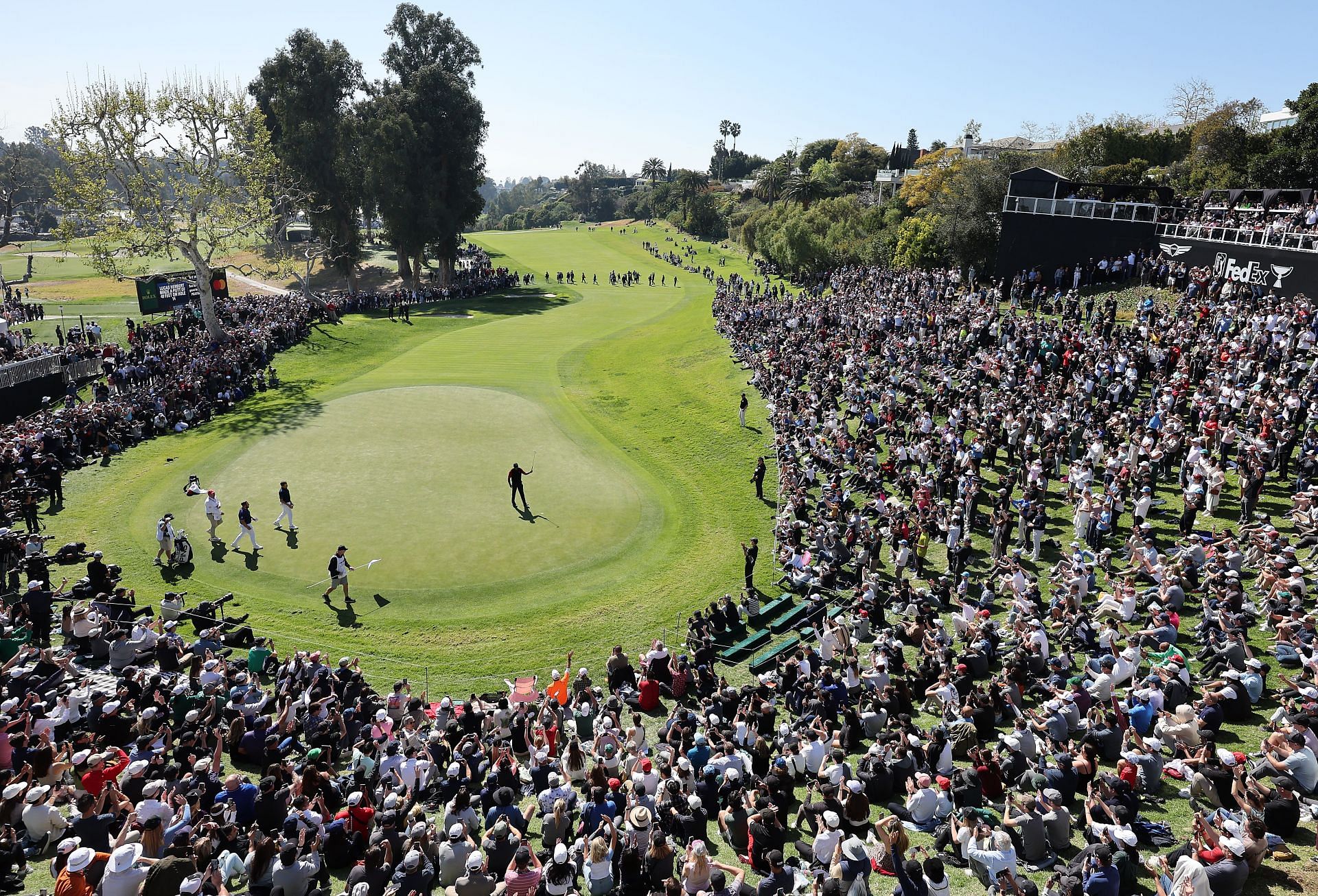 Tiger Woods at The Genesis Invitational - after a putt at the 18th green in the final round