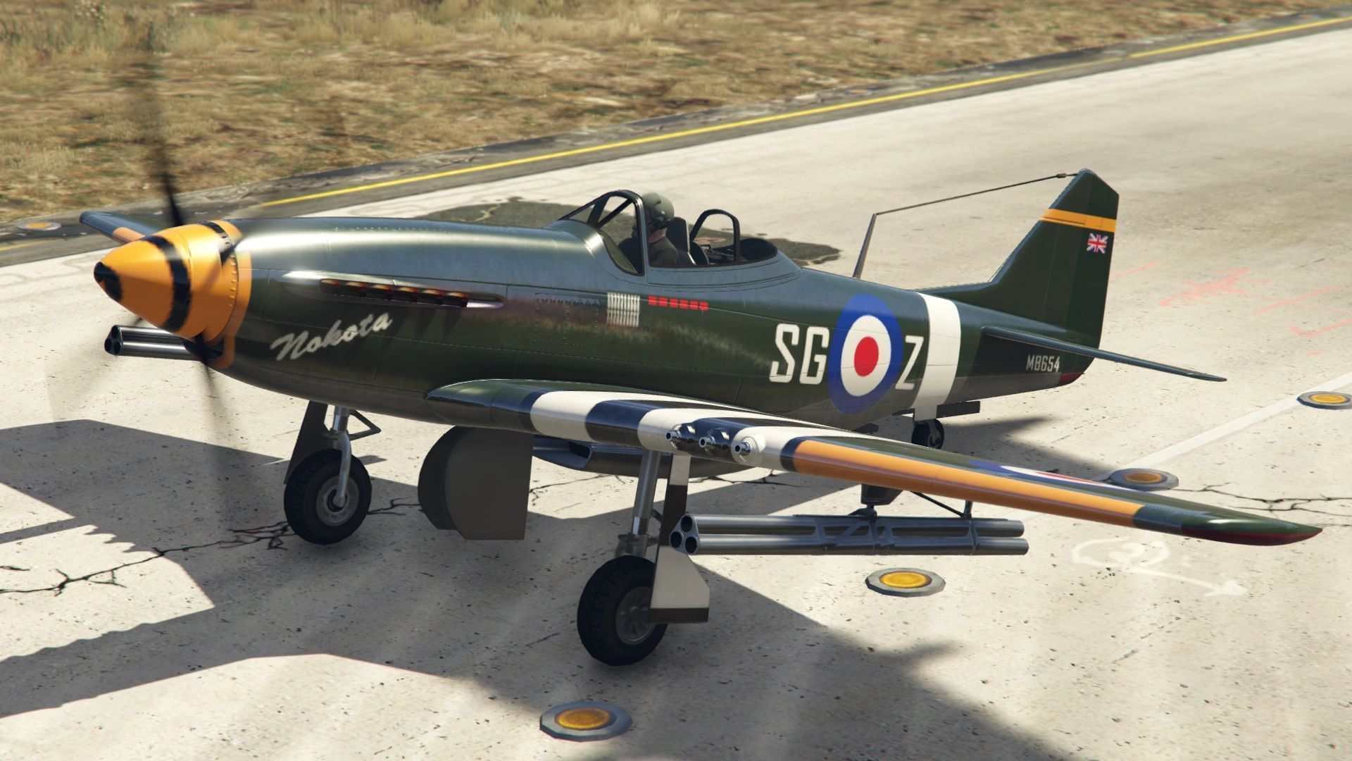 The liveries on the Nokota are all based on real historical variations of the Mustang, and they're all spectacular. For added authenticity (and aesthetics), you might want to avoid installing the hideous missile tubes.