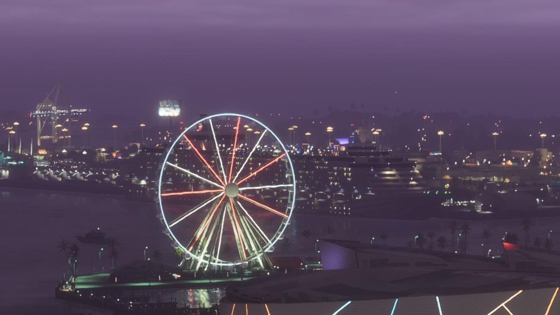 However, another interesting item in this shot is a cruise ship behind the Ferris wheel. It blends in with the background quite well due to the dark lighting, but upon zooming in, it appears fairly huge. Whether players can interact with it in any way remains to be seen.