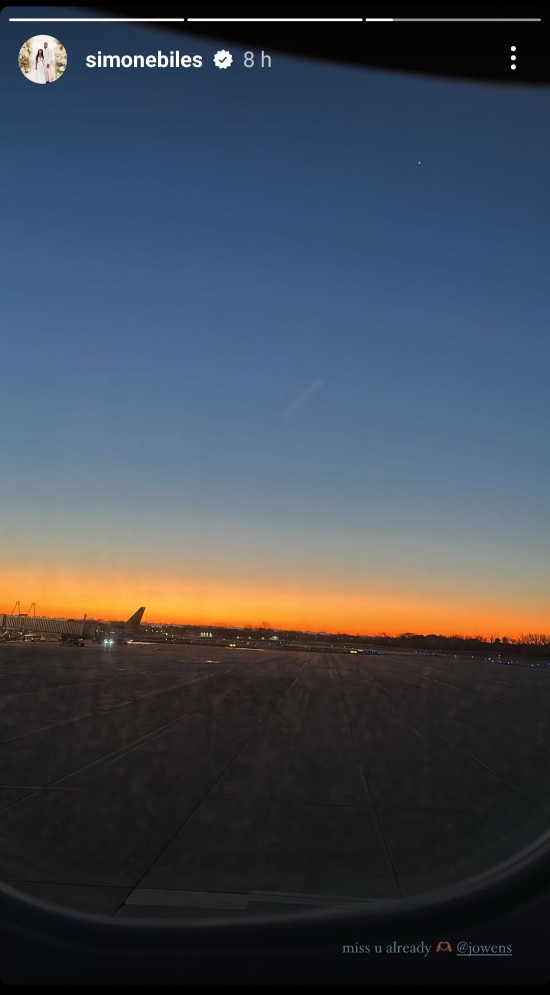 Simone Biles shared a picture on Instagram while traveling back from Green Bay after attending husband Jonathan Owen’s NFL match. In the photo, she tagged Owens as the caption read:
