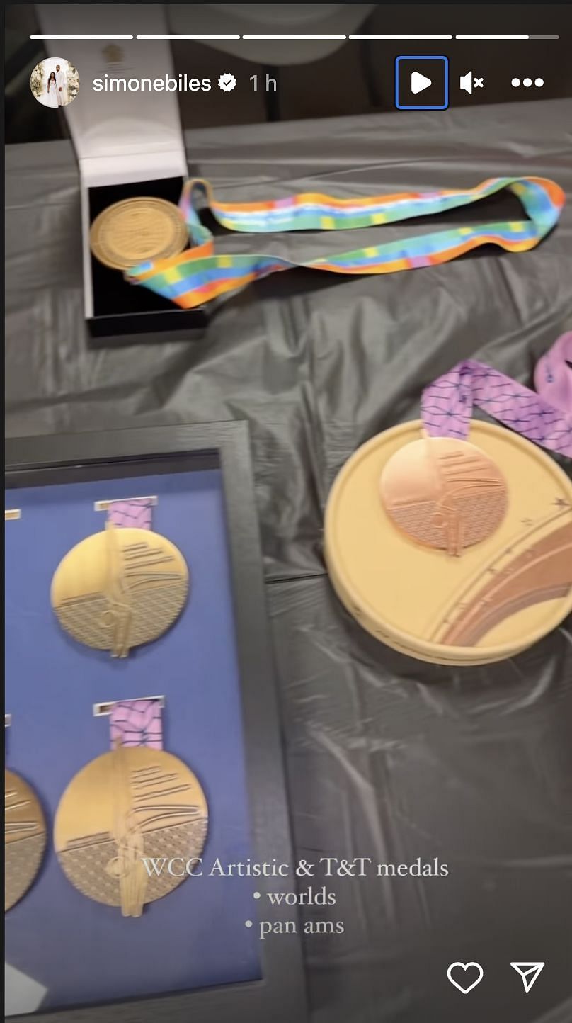 The American gymnast took to Instagarm to share a video of all her medals from the 2023 season and wrote:
