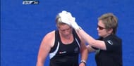 Injury # 2: New Zealand’s powerful Center forward Kathy Glyn, got hit on the left side of her head, while fishing for the ball between the legs of the Dutch forward Carlen Heuvel, who was in the process of taking a shot on the goal. The scene was like some one smashing your head with a sledge hammer.