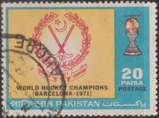 Pakistan issued a stamp on 24 October 1971 on the First Hockey World Cup held in Barcelona and another stamp on 31 December 1971 to commemorate Pakistan becoming World Hockey Champions.