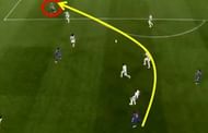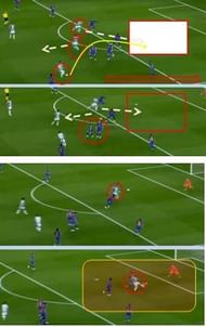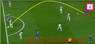 You can see how the Juventus right inner holds the ball for a split second to make a pass for his leading striker and take a try on the goal. Also observe how the striker floats back, while enticing two Barca defenders to follow him and creating space for his teammate to enter from the back.